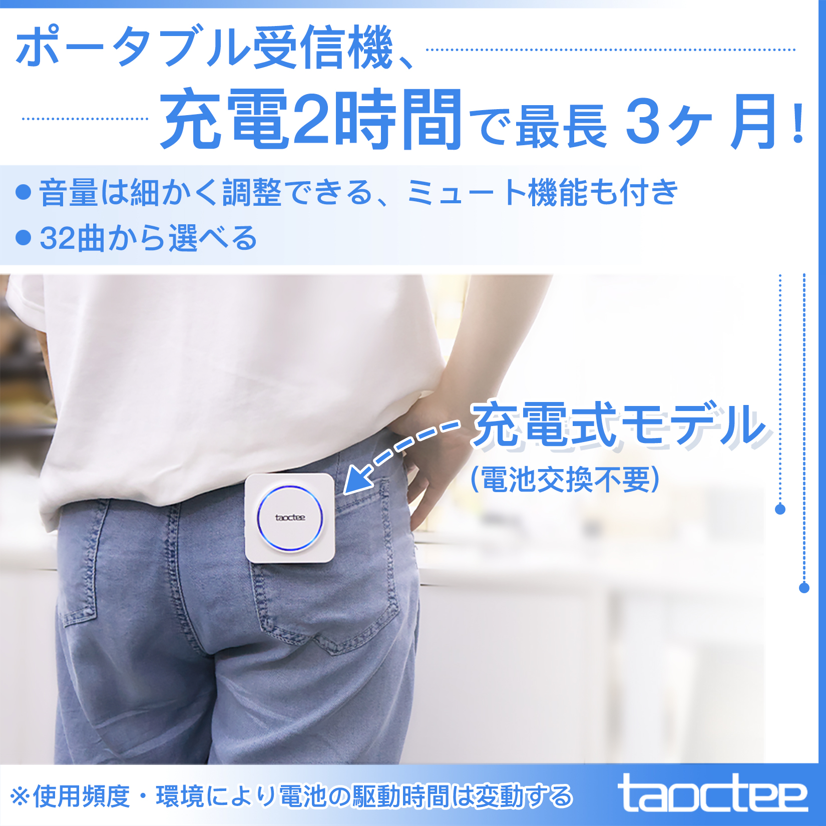 【電池について】充電式受信機はコンセントを必要とせず、USB-TypeC充電ケーブルが付属しているため、電池交換の手間が省け、電池を購入する費用も節約できます